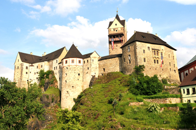 Niewielkie, zaledwie 3-tysięczne miasteczko Loket (Łokieć, gdyż położone jest na skalistym cyplu omywanym niemal dookoła wodami rzeki Ohrzy, przypominającym ramię zgięte w łokciu) otaczające dominujący nad nim gotycki zamek, jest jedną z historycznych atrakcji zachodniej części Czech. Odległe około 14 km na zachód od najsłynniejszego czeskiego uzdrowiska Karlowe Wary, było miejscem z którego blisko siedem wieków temu cesarz Karol IV wyruszył na polowanie w okoliczne lasy. Podczas którego odkryte zostały gorące źródła o właściwościach leczniczych, władca polecił więc założyć nad nimi osadę, dając początek przyszłemu europejskiemu kurortowi. Piękny jest widok tutejszego zamku na wysokiej skale, z wieżami, murami obronnymi i kilkupiętrowymi kazamatami, a także położonego obok niżej miasteczka, zwłaszcza w słoneczne popołudnia, gdy są one oświetlone od zachodu promieniami słońca.