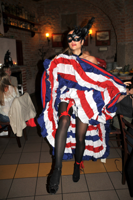 Równocześnie na niewielkiej przestrzeni wolnej między stolikami rozpoczynają się występy artystyczne. Najpierw dwie dziewczyny w sukniach a la Moulen Rouge sprzed ponad wieku usiłują tańczyć kankana odpowiednio wysoko zadzierając spódnice w jego małomiasteczkowej wersji.