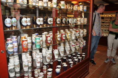 Aby dystyngowanie pić, oczywiście z porcelanowych kubków z długimi ustnikami, wodę przepisaną przez lekarza, Kolekcja tych kubków jest imponująca. W oszklonych szafach oraz w gablotach wiszących na ścianach poddasza i oświetlonych od wewnątrz, są ich setki, może nawet tysiące.
