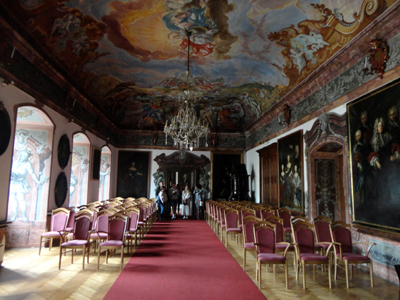 Słynie ona ze wspanialej akustyki, organizowane są w niej koncerty. Ciekawostkę stanowi północny fragment pałacu, łączący go z, również barokowym, oratorium kościoła p.w. św. Jana Chrzciciela 30-metrowej długości łącznikiem. Jego wewnętrzne okna na piętrze wychodzą na kościelną nawę.