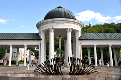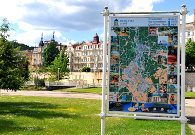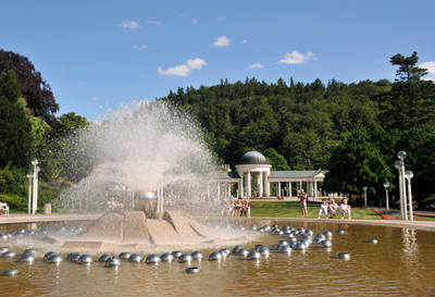 Miastem źródeł nazywane są Mariańskie Łaźnie (Mariánské Lázně, po niemiecku Marienbad) w oficjalnych materiałach w języku polskim, jakie otrzymuję w tutejszej Informacji Turystycznej. Drugie, po Karlowych Warach, najsłynniejsze czeskie uzdrowisko, położone też na zachodzie kraju i odległe od niego o około 50 km na południe. O ponad trzykrotnie mniejszej liczbie mieszkańców – ma ich niespełna 14 tysięcy. Ale górujące nad nim nie tylko liczbą źródeł wód mineralnych, lecz przede wszystkim ich różnorodnością. W samym mieście jest ich ponad 50, w okolicach zaś jeszcze około 160, z których eksploatowanych jest zaledwie część. Przy czym wszystkie źródła karlowarskie mają taki sam skład chemiczny, chociaż różne temperatury.