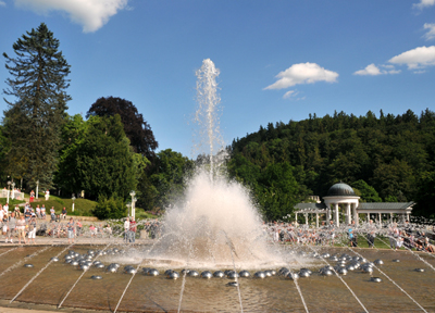 Dwa ostatnie spektakle wieczorne połączone są z kolorową iluminacją świetlną. I przyciągają dziesiątki widzów, którzy stoją dookoła niej tuż poza zasięgiem wody lub na przylegającym do niej od wschodu zboczu. Jest to, poza Główną Kolumnadą, która od 2010 r. jest Narodowym Zabytkiem Kultury Republiki Czeskiej, największa turystyczna atrakcja uzdrowiska.