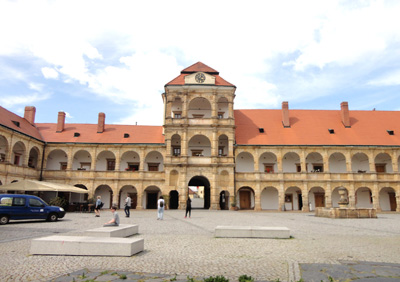 To ten zamek, zaprojektowany przez włoskiego architekta Giovanniego Marię Filippiego i zbudowany w latach 1611-1616, jest obecnie chlubą miasta. Od strony zamkowego dziedzińca z dwoma bocznymi skrzydłami i dwupoziomowymi arkadami oraz trzypoziomową wieżą bramną. Tragiczny w skutkach pożar w kwietniu 1840 r. który objął zamek i miasto, zmienił ich wygląd.