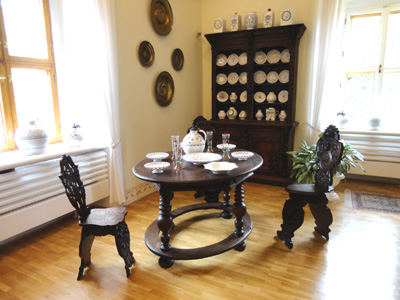 Szczególnie cenny jest jeden z zachowanych dużych flamandzkich gobelinów z początku XVI w. przedstawiający, w trzech częściach oddzielonych pniami drzew z liśćmi i owocami, historię Ifigenii w Taurydzie, córki mykeńskiego króla Agamemnona w antycznej Grecji. Wśród licznych obrazów są kopie z epoki m.in. „Lwa”, „Złotego hełmu” i portretu młodego Comeniusa – Jana Amosa Komeńskiego Rubensa, a także kopia z XVIII w. „Adama i Ewy” Cranacha.