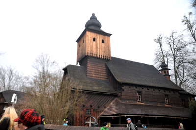 A także znanych wołoskich malarzy: Břetislava Bartoša (1893-1926) i Jana Kobzáňa (1901-1959) oraz wielu innych zasłużonych, których nazwiska niewiele mi jednak mówią. Kościół w tym skansenie jest czynny, odbywają się w nim msze – trafiłem na jedną z nich.