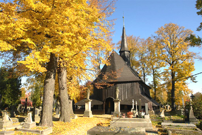 Na cmentarzu w Broumovie (30 km od Kudowy-Zdroju) znajduje się unikatowy zabytek architektury, drewniany kościółek Marii Panny, najstarszy tego typu w Czechach i jeden z najstarszych drewnianych kościołów w środkowej Europie. Według kroniki klasztoru broumovskiego, założony został już w roku 1177 przez austriacką szlachciankę, która w tym miejscu przyjęła chrzest. Podarowała ona kościołowi diadem z pereł, który do dziś jest przechowywany w muzeum klasztornym. Pierwsza oficjalna wzmianka o kościele w literaturze pochodzi z końca XIV wieku. W czasie wojen husyckich kościół został spalony, odbudowany w roku 1450. Do dziś zachowany został, z drobnymi zmianami, gotycki styl budowli. W roku 2008 kościół uznano za narodowy zabytek kultury. Ciekawa jest także stara część cmentarza, w której są groby mnichów benedyktynów, chowanych od roku 1784.