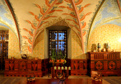 Zwłaszcza niezwykłą przebudowę, szczególnie wnętrz, dokonaną w latach 1909-1913 przez wybitnego architekta i jeszcze bardziej sławnych czeskich artystów malarzy.
