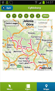 Aplikację ściągnąć można ze strony http://m.pl.krkonose.eu/. Znajdują się w niej między innymi propozycje wycieczek, atrakcje turystyczne, ścieżki edukacyjne, szlaki piesze i rowerowe, trasy zjazdowe, biegowe, aktualne wiadomości dla narciarzy,.