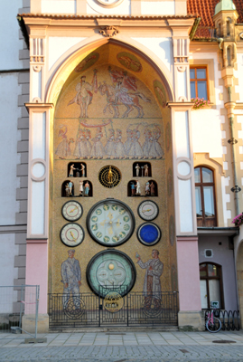 We wnętrzach ogólnie dostępne w godzinach urzędowania są ekspozycje: historii miasta, dziejów ratusza i jego słynnego zegara astronomicznego. On właśnie, podobnie jak Orloj w dolnej części praskiego ratusza staromiejskiego, przyciąga największą uwagę turystów. Również figurkami pojawiającymi się wraz z biciem zegara.