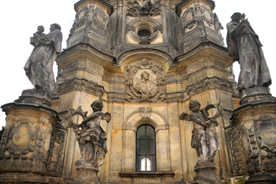Jest to, jak już wspomniałem, największa barokowa rzeźba grupowa w Europie Środkowej. Ma wysokość 32 m, w jej dolnej części znajduje się kaplica. Trzypoziomowa dekoracja rzeźbiarska tej kolumny składa się z 18 posągów świętych, 12 figur Niosących Światło oraz 6 płaskorzeźb z postaciami apostołów.