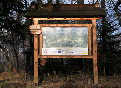 Na ważniejszych skrzyżowaniach czy w atrakcyjnych turystycznie miejscach znaki są uzupełnione przez drogowskazy z nazwą miejsca, informacją o wysokości nad poziomem morza, krótkim tekstem informacyjnym i wskazówkami dojścia do kolejnych miejsc na trasie.