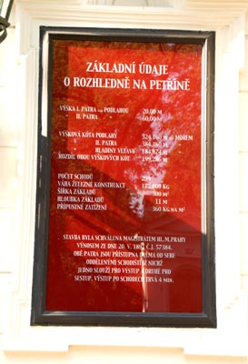 Wieża Petrzyńska (Petřinska rozhledna) ma 60 metrów wysokości, na jej platformę widokową znajdującą się 5 metrów poniżej szczytu można zarówno wejść po 299 schodach, jak i wjechać windą. W przeszłości służyła ona do celów radiowych. To m.in. z niej komuniści zagłuszali „wrogie” rozgłośnie, przede wszystkim Wolną Europę. Również na Petrzyńskie wzgórze można wjechać wspomnianą kolejką. Przy czym na podstawie biletu komunikacji miejskiej. Honorowane są również dobowe, trzydobowe i na dłuższe okresy do wszystkich środków komunikacji miejskiej. A seniorzy z krajów Unii Europejskiej, podobnie jak w całym mieście, wjeżdżają bezpłatnie. Kolejka ta ma w połowie trasy stację pośrednią Nebozizek, można więc, gdy ktoś przeliczy się z siłami podczas wchodzenia na wzgórze pieszo, wygodniej z niej podjechać na szczyt. Stacja krańcowa na nim znajduje się, oczywiście, w pobliżu wieży widokowej. Niedaleko od niej znajduje się, również pozostałość po wystawie sprzed ponad wieku, Labirynt Luster (Zrcadlové bludiště) przyciągające dziś głównie dzieci. Podczas wystawy krajowej był on pawilonem wystawowym Klubu Czeskich Turystów, a zbudowany został jako kopia średniowiecznej Bramy Wyszehradzkiej.