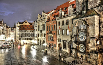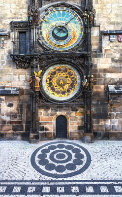 Wieczorem na widzów czekają projekcje artystyczne na fasadzie Ratusza. Praski orloj jest najbardziej znanym i najstarszym zegarem astronomicznym w Czechach. Został skonstruowany w 1410 roku przez Mikuláša z Kadania na zlecenie ówczesnych radnych. Wokół zegara umiejscowione są cztery drewniane figurki. Znajdująca się po lewej stronie Próżność kiwa głową, Skąpiec trzyma w ręku mieszek i wygraża laską.