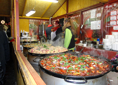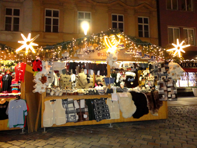 Chociaż jeszcze kilka lat temu stanowiło ono sporą część oferty na podobnych jarmarkach w Pradze i innych miastach, w których na nich bywałem. Nie brakuje oczywiście kramów w których można coś zjeść lub chociażby przekąsić oraz napić się m.in. grzanego wina. One zresztą, w piątkowy dosyć chłodny wieczór, z niewielką temperaturą ujemną, ale przykrym wiatrem, były najbardziej oblegane.