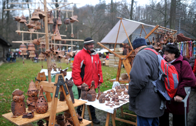 A także kolekcję zabytkowych uli. Natomiast w sąsiednich częściach skansenu dziesiątki wiejskich domów oraz zabudowań gospodarczych. O skansenie napiszę jednak już osobno. Na rożnowskim jarmarku postawiono ponad sto drewnianych kramów z ofertą podobną jak w Ołomuńcu, ale wzbogaconą o prace, zwłaszcza ozdoby choinkowe i upominki, wykonywane na miejscu przez rzemieślników.