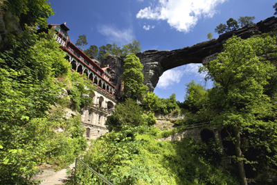 *Brama Pravčicka – monumentalny most skalny, ulokowany 3 km od Hřenska w pobliżu granicy z Niemcami. Uważany za symbol Czeskiej Szwajcarii. Jest to największy most skalny w Europie. Jego wysokość wynosi 16 m, szerokość niemal 27 m. Nocleg w miejscowości Chřibská.