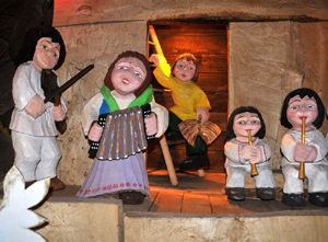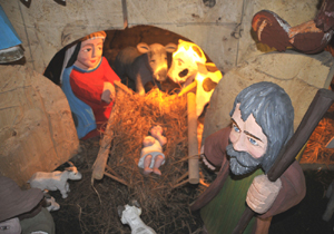 Figurki w tutejszej szopce są polichromowane, a do stajenki spieszą goście w strojach regionalnych, m.in. górnik.