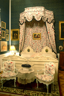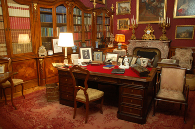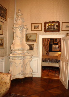 Oglądamy apartamenty reprezentacyjne i prywatne, dziecięce, a także niektóre zaplecza. M.in. bibliotekę, gobeliny, mnóstwo obrazów, wśród nich o tematyce jeździeckiej i pięknych koni oraz pamiątek rodzinnych, stylową sypialnię z łożem z baldachimem. Na zewnętrznych ścianach pałacu, uwagę zwraca tematyka końska, przede wszystkim rzeźby końskich łbów.