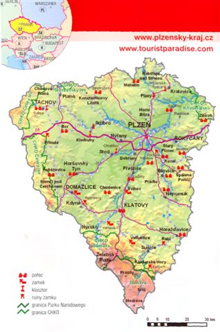 Z obszernej, bogato ilustrowanej broszury w dużym formacie można się dowiedzieć m.in., że chlubą województwa jest przyroda – lasy zajmują w nim 39% powierzchni, a szczególne miejsce wśród nich zajmuje narodowy Park Szumawa oraz Park krajobrazowy Czeski Las. Sporo jest tam również zamków: średniowiecznych, renesansowych, barokowych i secesyjnych – o najważniejszych już wspomniałem i ruin grodów, starych kościołów, pałaców oraz zabytkowych średniowiecznych miast. Wśród nich najmniejsze w Europie Środkowej: Rabsztejn nad Strzelą. Warto też przyjechać na festiwale folklorystyczne w Pilźnie, Klatowach na Chodsku, na jarmarki, festyny, karnawały, bale, dyskoteki czy wiejskie potańcówki.