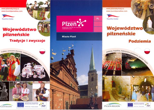 Goście przywieźli również sporo folderów i innych materiałów informacyjnych w języku polskim. Przedstawiają one zarówno całe województwo, jak i samo Pilzno; Tradycje i zwyczaje ludowe; Podziemia – są one również w średniowiecznych i późniejszych kopalniach rud na Szumawie i Poszumawiu oraz w rejonie Tachovska; Widoki z wysokości – z wież obserwacyjnych, punktów widokowych, samolotów, paralotni czy spadochronów; Sporty nietradycyjne i ekstremalne. No i, oczywiście, czeską kuchnię i browary. Których, poza najsławniejszym w Pilźnie, jest tam jeszcze 9 małych. M.in. Chodovar w Chodowej Planie, gdzie można skorzystać z piwnych kąpieli.