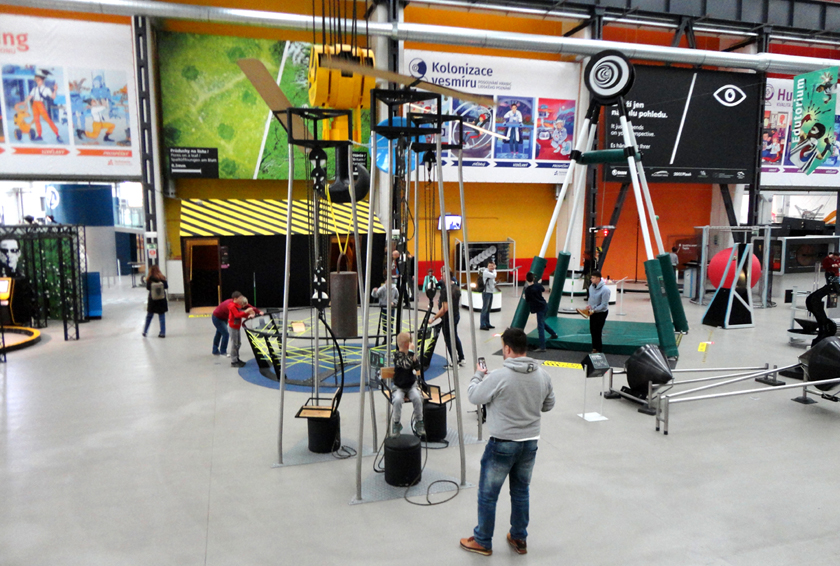 Zarówno bowiem do Planetarium jak i Techmanii wchodzi się z tego poziomu, z szerokiej łączącej oba budynki kładki przerzuconej nad torami zakładowej bocznicy kolejowej. W tej drugiej obejrzeć można również rzeźbę „Entropa” Davida Černego, która wywołała wiele dyskusji i kontrowersji podczas jej prezentacji w Brukseli w siedzibie Unii Europejskiej, gdy prezydencję w roku 2009 sprawowały Czechy.