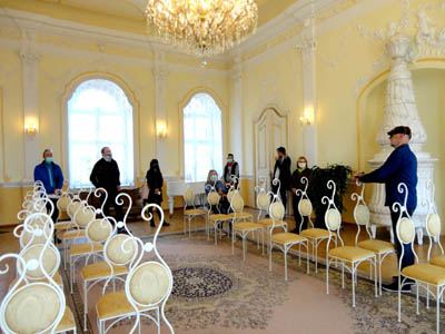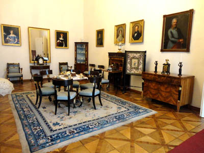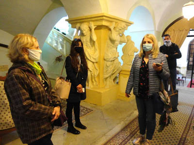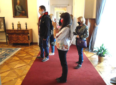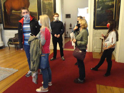 Niestety, uzgodnione przez organizatorów zwiedzanie tutejszego pałacu na miejscu zamieniono na oglądanie z zewnątrz najciekawszych obiektów miasta, z wypożyczonymi w placówce IT słuchawkami podłączonymi do audiobooka. Nie dla wszystkich ich starcza…