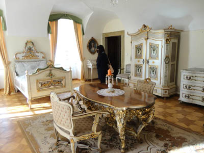 Szalenie ciekawym i rzadkim w Czechach, gdzie w zabytkowej architekturze króluje gotyk, renesans i barok, rokokowym pałacu Nove Hrady. Zwróconym poprzednim właścicielom w ramach reprywatyzacji i pieczołowicie, chociaż z trudem, przywracanym do dawnej świetności.