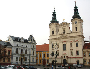 Do najcenniejszych zaliczane są również barokowe obrazy Ignaca Raaba i rzeźby Ondřeja Schweigla znajdujące się w bocznych kaplicach. Także ten kościół, podobnie jak Stary Ratusz i parę innych zabytkowych tu budowli wzniesiono na drewnianych palach wbitych w piasek. Badania przeprowadzone w połowie XX w. wykazały, że są one nadal w znakomitym stanie. W przeszłości w mieście był także drugi klasztor – franciszkanów, założony w roku 1490. Poklasztorny gmach zajmuje obecnie archiwum powiatowe, a szczególnie cenny w nim jest refektarz.