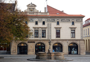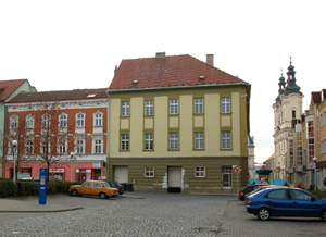 W drugiej ćwierci następnego stulecia stojące na tym miejscu dwa domy mieszczańskie gruntownie przebudowano. Pod koniec XIX w. ozdobiono je pseudo renesansową fasadą, ale wewnątrz zachowały się niektóre, nawet najstarsze fragmenty budowli. Skoro o zabytkowych domach mowa, trudno nie wspomnieć chociażby jeszcze o renesansowym „Pod Słońcem” (Dům U Slunce) z 1578 r., który w przeszłości był magazynem soli.