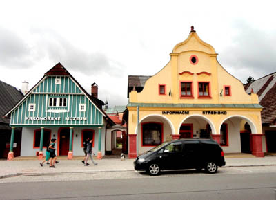 Wybudowano ją w roku 2009 częściowo w konstrukcji zrębowej, ze szczytem o konstrukcji ryglowej. Nieco dalej na południe, przy wspomnianym placu Masaryka, stoi barokowy Stary Ratusz oraz ciąg dwupiętrowych kamieniczek z podcieniami. Kilkadziesiąt metrów na zachód od niego, w parku, renesansowy zamek z lat 1545-1546.