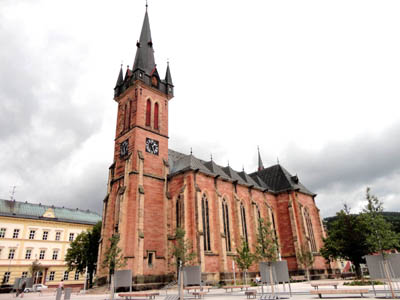 Przy placu Pokoju (Námesti Miru) stoi ładny, dziekański trzynawowy neogotycki kościół p.w. św. Wawrzyńca z sześciobocznym prezbiterium i 60 metrową wieżą. Postawiony w latach 1888-1889 na miejscu rozebranego rok wcześniej starego.
