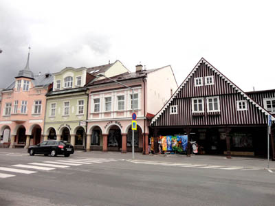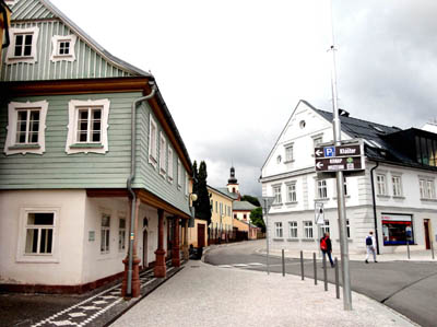 W tym Centrum Informacyjnym znalazłem także poświecony mu folder w 4 językach, w tym polskim. Domy w tej części miasta są w większości parterowe z mansardami, zwrócone ku ulicy szczytami. Najcenniejsze stoją przy pryncypialnej ulicy Karkonoskiej (Krkonošska) łączącej plac Pokoju z Placem Masaryka i dalej na południe z pl. Europejskim.