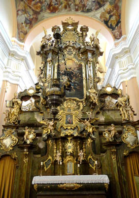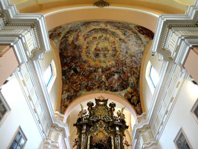 Niestety aktualnie nieczynna ze względu na prace remontowe. Zwiedzać można tylko sąsiadujący z nim piękny kościół klasztorny. Jest w nim, w nawach bocznych, siedem ołtarzy zwanych portalowymi, z lat 1726-1736. W wysokim na 19 m ołtarzu głównym dominuje obraz patrona, namalowany przez praskiego artystę Franca Dallingera.
