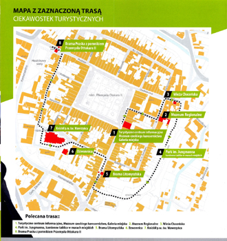 Druga, chyba dla turystów zagranicznych, bo znalazłem ją z folderze w języku polskim, pomija trzy z tych punktów. O ile jest to zrozumiale w przypadku cmentarza, zaskakuje brak propozycji zobaczenia rynku. Jest on bowiem, jak już wspomniałem, największym kwadratowym w Czechach.