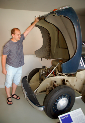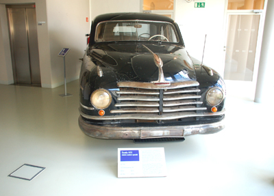 Zażyczył on sobie karoserię na podwoziu Tatry T 52 i… wyjechał stąd białym kabrioletem z kawowymi błotnikami oraz luksusowym wnętrzem, za który zapłacił ogromną wówczas sumę 36 tys. koron. Projektowanie i produkcja odbywały się w tym gmachu oraz dawnych celach dobudowanego do niego wcześniej miejskiego więzienia. Muzeum prezentuje historię tej pracowni, którą kierował Josef Sodomka jr.