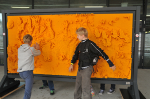 Przekonać się o tym można już po przekroczeniu drzwi tego Świata. Przy wystawionej w holu dużej, dwustronnej pomarańczowej tablicy, gromadzą się młodzi i starzy aby odcisnąć w niej swoją dłoń – to jest najpopularniejsze, ramię czy łokieć. Tablica ta jest tak skonstruowana, iż jej ruchome elementy powodują, że dłoń pozostawia w niej wgłębiony ślad. Ale po drugiej stronie pojawia się równocześnie jego wypukły wariant.