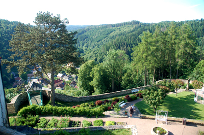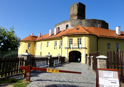 Na najwyższym piętrze zamku, pod oryginalnym stropem z drewnianymi belkami z XV wieku, umieszczona jest duża galeria modeli czeskich zamków. Trasę C – wejście na gotycką wieżę, obchodzenie murów, dziedzińca, gotyckiego ogrodu, oglądanie widoków z góry na okolicę itp. pokonywaliśmy już, każdy sam, następnego dnia rano.