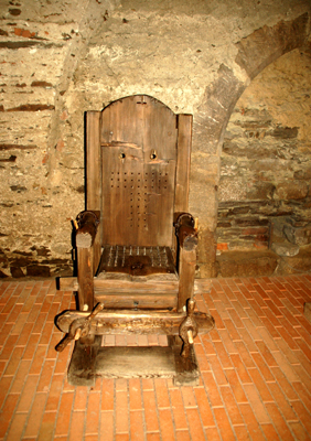 Nazywana Mučirną przedstawia repliki narzędzi i urządzeń służących do „wydobywania” z podejrzanych „prawdy” i przyznawania się do win pod wpływem koszmarnych tortur. Demonstrował je nam oraz ich stosowanie kasztelan – tak nazywany jest zarządca zamku, Miloš Dempir w trakcie blisko dwugodzinnego nocnego zwiedzania.