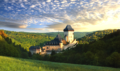 Karlštejn, położony 30 km na południowy zachód od Pragi, należy do najsłynniejszych zamków czeskich. Został zbudowany w 1348 roku przez czeskiego króla i cesarza rzymskiego Karola IV. jako miejsce przechowywania królewskich skarbów, świętych relikwii i insygniów koronacyjnych. Trasy zwiedzania obejmują pomieszczenia Pałacu Cesarskiego, Skarbiec w Wieży Mariańskiej, w którym można zobaczyć replikę korony świętego Wacława i Dużą Wieżę ze słynną kaplicą Św. Krzyża, w której znajduje się cykl 129 obrazów Mistrza Teodoryka, największa w Czechach galeria portretowa władców czeskich.