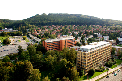 Poza słynnymi „klockami” z dominującym kolorem ceglastym, widać z nich także kilka współczesnych budowli. Ze zwracających uwagę nowoczesną architekturą gmachów uniwersyteckich, a także nieliczne starsze domy skupione w okolicach kościoła i trochę willi ze spadzistymi dachami.