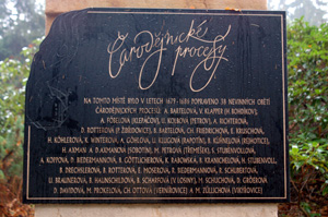 Na zdjęciu: Tablica pamiątkowa na obelisku w Parku Zdrojowym Velke Losiny, na miejscu w którym w latach 1679 – 1686 spalono 38 niewinnych kobiet oskarżanych o czary. W latach zabobonów i ciemnoty nie była to bynajmniej zabawa…