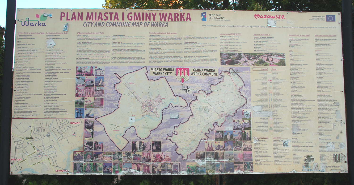 Nas ugoszczono bardzo smaczną zupą – kremem z kalafiorów z dodatkami, m.in. ziarenkami szyszek. I wyjątkowo smacznym daniem głównym: udkami kaczki pieczonymi powoli na małym ogniu, polanej chyba wiśniowym gęstym sokiem spływającym na gotowane, pokrojone w drobną kostkę, czerwone buraczki oraz z podsmażanymi kopytkami. Pycha! Już widok tego dania na zdjęciu, które publikuję, budzi apetyt. Następnym i ostatnim etapem tej podróży była Warka. Dziś niewiele ponad 10-tysięczne miasto, którego nazwa reklamowana jest, chyba w tej wersji nadmiernie, gatunkiem jednego z piw.