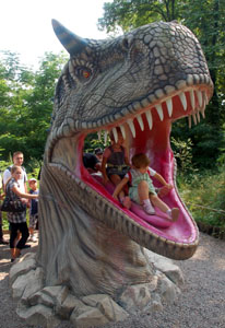 Odpowiednie informacje znajdują się również na tablicach przy każdym egzemplarzu. Dzieci mają uciechę, gdyż oprócz większości dinozaurów których nie wolno dotykać, są dla nich nieruchome kopie, na które mogą wchodzić – nawet do straaasznych paszcz ! – a rodzice je fotografować. Uzupełnieniem parku dinozaurów jest muzeum ich szkieletów oraz różnych skamieniałości.