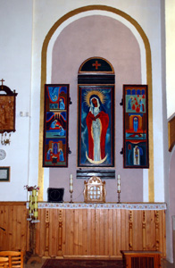 Obok niego jest mały cmentarz wojskowy z grobami żołnierzy polskich poległych w latach I wojny światowej, polsko – bolszewickiej w 1920 oraz w latach 1939 – 1945. Wewnątrz tej czynnej trzynawowej świątyni, z tradycyjnym głównym i nowoczesnymi bocznymi ołtarzami, ciekawą drewnianą chrzcielnicą itp. znajduje się kilka tablic, wśród nich także o identycznej treści, ale z odrębnymi tekstami po polsku i po białorusku, ufundowanych w większości w 1999 roku.