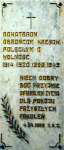 Upamiętniają one księży: kanonika Jana Wolskiego i Władysława Grobelnego rozstrzelanych przez hitlerowców 15.10.1942 za pomoc żydowskim dzieciom; Ziemian, uczestników wojen 1920 i 1939 Władysława Miłaczewskiego ( 1901 – 1940 ? ) i Bolesława Miłaczewskiego ( 1902 – 1940 ? ), aresztowanych przez NKWD we wrześniu 1939 r. i zamordowanych prawdopodobnie w 1940 r. ; Bohaterskich Obrońców Kresów poległym o wolność. 1914, 1920, 1939, 1945. A także Romualda Traugutta i pisarkę Marię Rodziewiczówną ( 1864 – 1944 ).