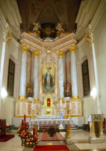 Ponadto ikoną MB Kazańskiej oraz relikwiami św. Sofii Słuckiej. Obok niego, na dawnym Górnym Rynku, obecnie Placu Wolności, jest kilka zabytkowych budowli. Pięknie odrestaurowany gmach b. żeńskiego klasztoru bernardynek. B. kościół św. Jazepa klasztoru bernardynów – później sobór Pietropawłowski, obecnie nadal archiwum, ale już z decyzją, że przeniesione zostanie w inne miejsce.