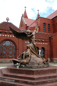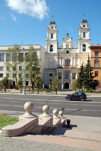 W pobliżu, również odtworzonego w 2004 roku, bo zburzyć go kazał jeszcze w XIX wieku car Mikołaj I, mińskiego Ratusza. Po jego, a zarazem ulicy, drugiej stronie, jest jeszcze jedna zabytkowa świątynia – katedra katolicka p.w. Najświętszej Dziewicy Marii, dawny, z XVII w., kościół jezuitów. Zabytkowych świątyń prawosławnych, ale już nie takiej rangi, głównie z XIX w. jest Mińsku jeszcze kilka.
