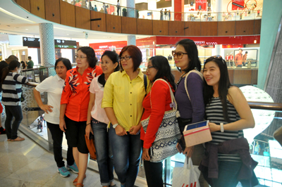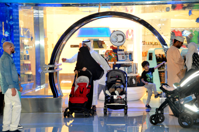 Od oglądania salonów i sklepów poszczególnych firm można dostać zawrotów głowy. Przede wszystkim ze względu na bogactwo oferty, jej ekspozycję, zabieganie – chociaż dalekie od nachalstwa arabskich bazarów – o to, aby klienci zechcieli coś kupić. A w tym trzeba im przecież pomóc. Naszą uwagę zwracał przede wszystkim różnorodny tłum kupujących i zwiedzających. Ze znacznym udziałem tradycyjnie ubranych Arabów: mężczyzn w białych, długich niemal do ziemi galabijach i zawojach na głowach, kobiet w czerni, z osłoniętymi oczywiście głowami, nierzadko zakwefionych.
