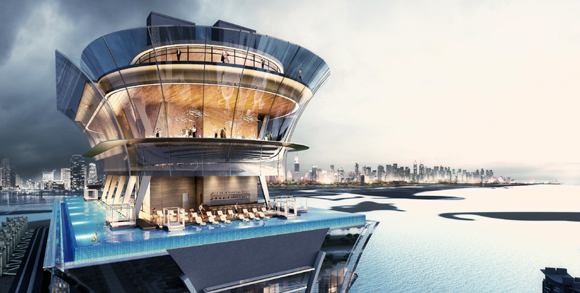 Basen, który pomieści 930 000 litrów wody, znajdzie się na 50 piętrze Palm Tower. Na podium nad basenem powstanie restauracja (na 300 miejsc), a nad restauracją (na 52 piętrze, na wysokości 240 metrów) – publiczny taras widokowy. Wieżowiec Palm Tower mieści się w samym centrum słynnego, wielokrotnie nagradzanego Palm Jumeirah.