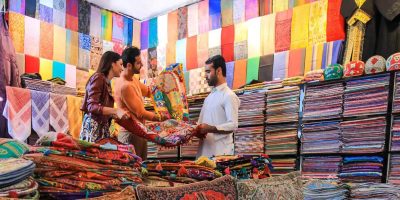 Wycieczka do Dubaju nie może obyć się bez wizyty na jednym z jego gwarnych targowisk. Targ Tkanin w Bur Dubai jest idealnym miejscem na zakupy materiałów i podziwianie barwnego otoczenia. Można tam przeglądać setki bel haftowanych tkanin w oszałamiającej gamie kolorów i faktur. Targ oferuje także wybór gotowych kolekcji prosto od miejscowych projektantów.